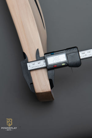 One of the best mid-range bats at Powerplay Bats, this model is crafted from super-clean English willow with around 7 straight grains, giving it the look and feel of a top-end bat. The clean face and grain structure make it stand out well above its price point.